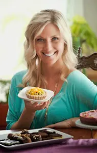 A classically trained chef turned raw-dessert chef, she is a travel bug, a chocoholic, and a certified yoga instructor.