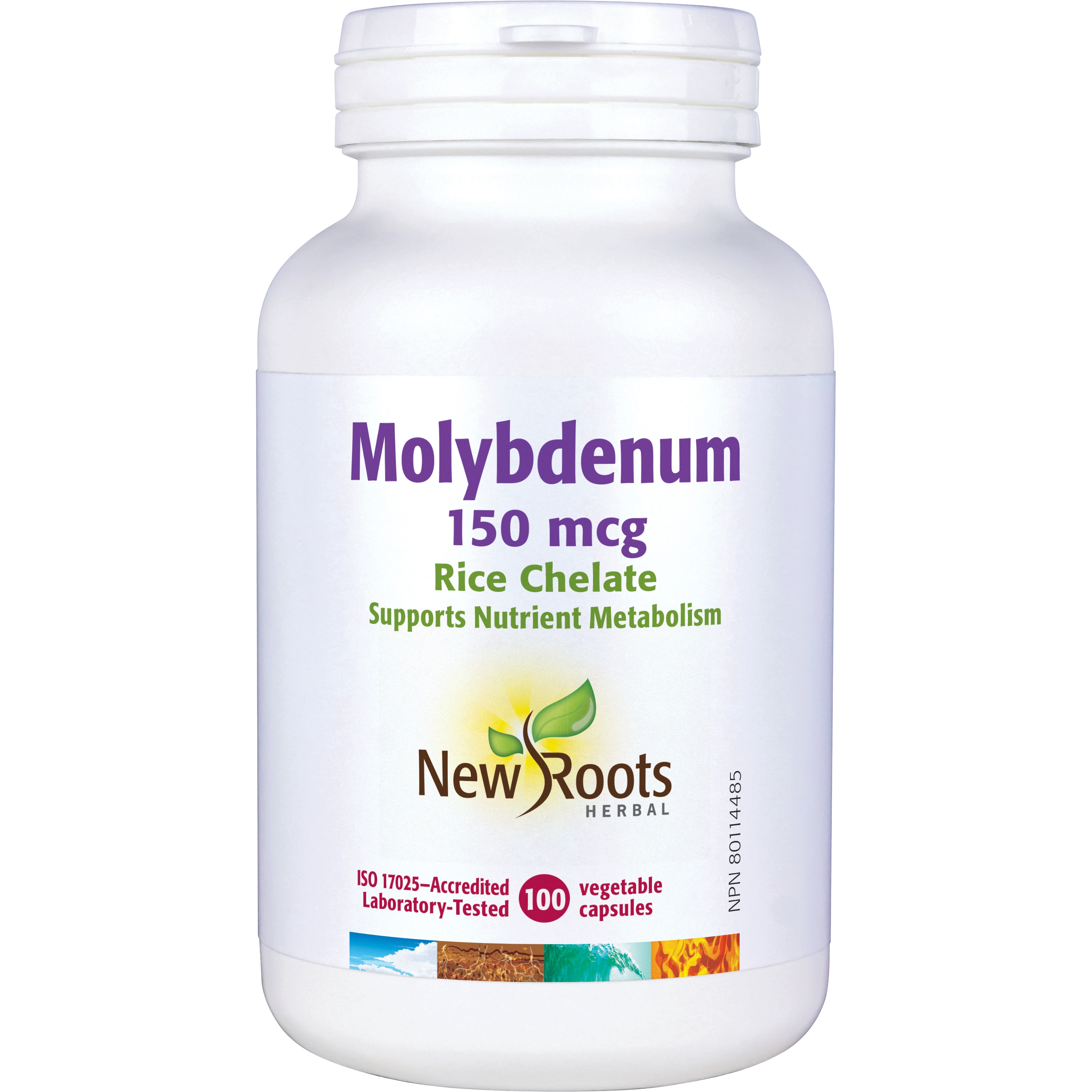 New Roots Herbal’s Molybdenum (rice chelated) is chelated (bound) with amino acids for ease of intestinal absorption and bioavailability. Low-dose intervention, with 150 μg per capsule, is an excellent way to address a diagnosed deficiency.